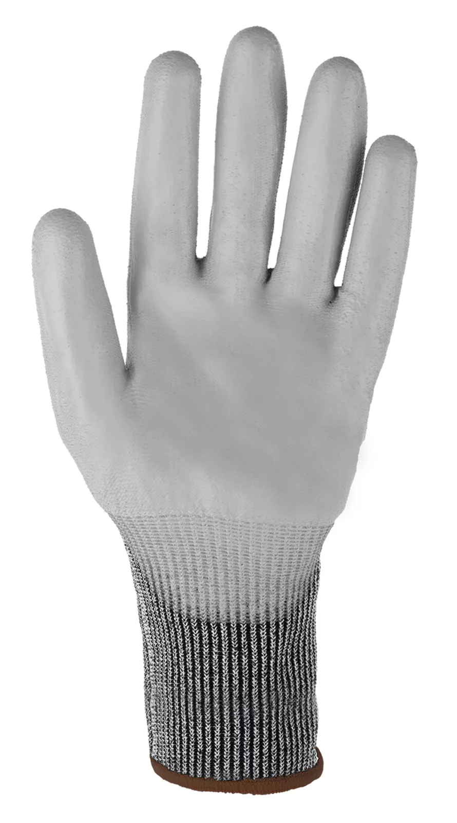 13-as kötésű, szürke, varrás nélküli alapanyag HPPE-ből, acélszálból, spandexből és poliészterből, Szürke poliuretán tenyérmártásKötött mandzsetta