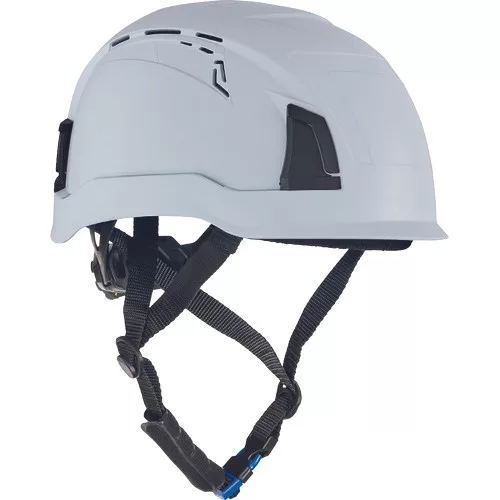 »ABS hegymászó sisak szellőző kivitelben, 6 pontos fejkosárral. A méret (53-66 cm) racsnis kerékkel állítható. A fejvédő beépített izzadság- és nyakpánttal, cserélhető hevederrel készül, hallásvédőkkel kompatibilis kialakításban. Hőmérséklet: -30°C- tól +50°C-ig. Élettartam: 5 év. Súly: 470 g. Szabvány: EN 12492