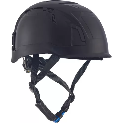 »ABS hegymászó sisak szellőző kivitelben, 6 pontos fejkosárral. A méret (53-66 cm) racsnis kerékkel állítható. A fejvédő beépített izzadság- és nyakpánttal, cserélhető hevederrel készül, hallásvédőkkel kompatibilis kialakításban. Hőmérséklet: -30°C- tól +50°C-ig. Élettartam: 5 év. Súly: 470 g. Szabvány: EN 12492