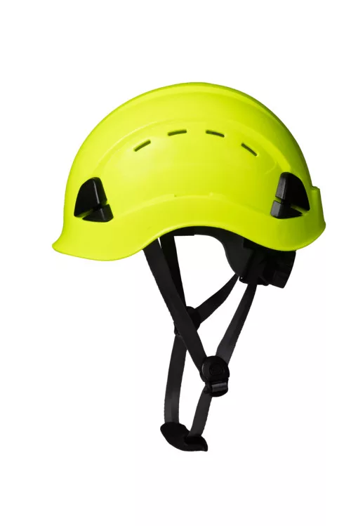 * ABS alapanyagú fehér sisak magasban végzendő, ipari vagy mentési, alpinista munkákhoz* Gyors-beállítós racsnis 6 ponton felfüggesztett textil fejkosár (52-63 cm) * Rövid sildnek köszönhető megnövelt látótér* -30 C-os hideg körülmények között is használható illetve véd oldalirányú nyomás hatása elleni is (LD)Súlya: 470 g