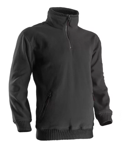 Matière extérieure >> Laine polaire 100 % polyester 330 g/m2, anti-boulochageFermeture >> Zip jusqu’en haut du colManches >> Montées terminées par poignets élastiques acryliques bord côteSerrage bas >> Élastique bord côte