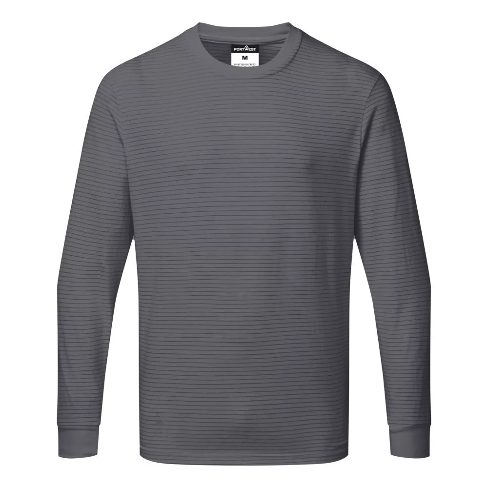 This Anti-Static ESD long sleeved T-Shirt is light and comfortable. The high cotton percentage makes it ideal for warm environments and EPA areas where electrostatic resistance is required. The carbon fibre rib adds a smart, protective, corporate finish. Carbon fibre woven through the fabric provides superb anti-static protection. Available in a large variety of sizes and colours.