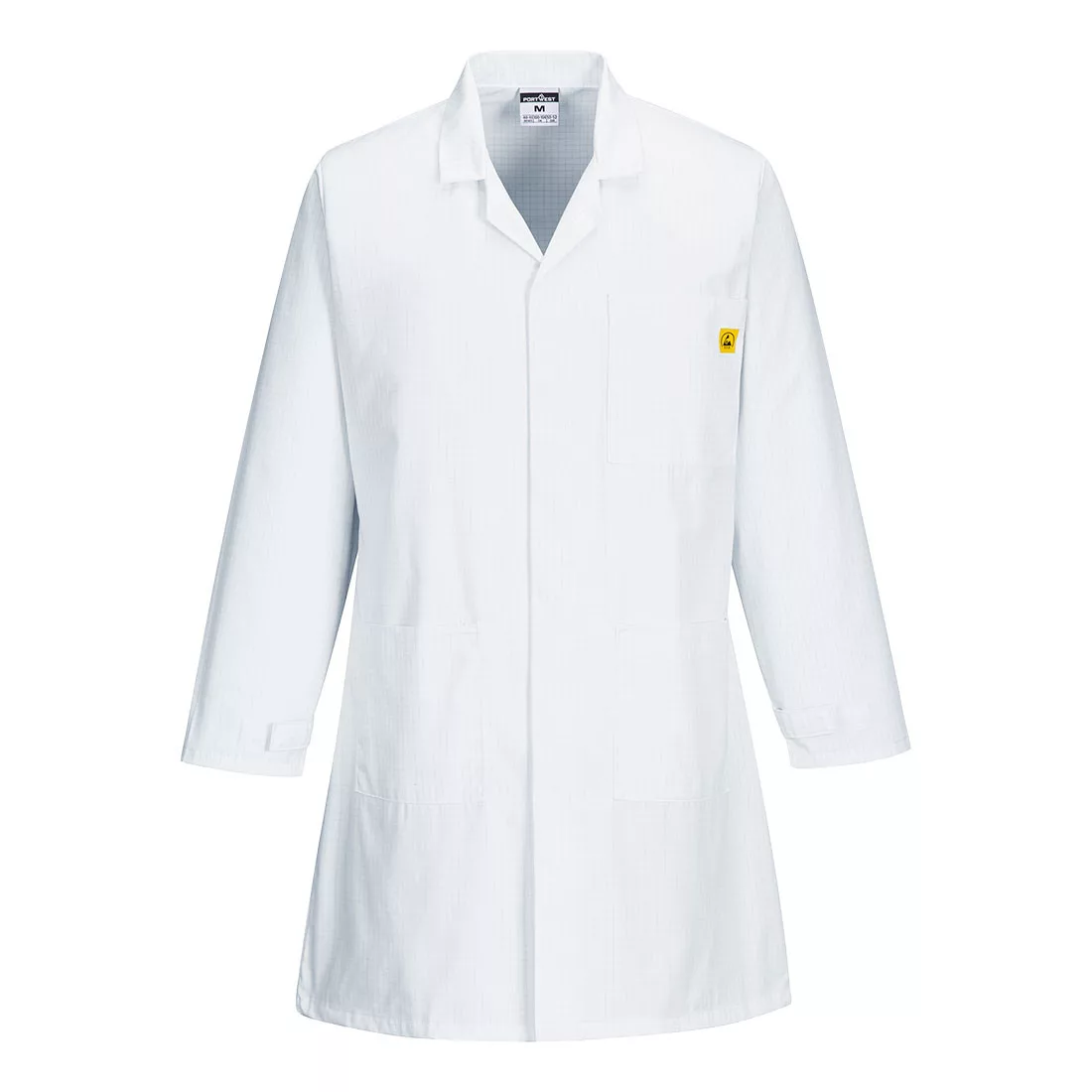 This inherently anti-static coat is ideal for environments where electrostatic resistance is required. Designed with safety and comfort in mind. Features include concealed stud front, two lower patch pockets, one chest pockets and adjustable cuffs.