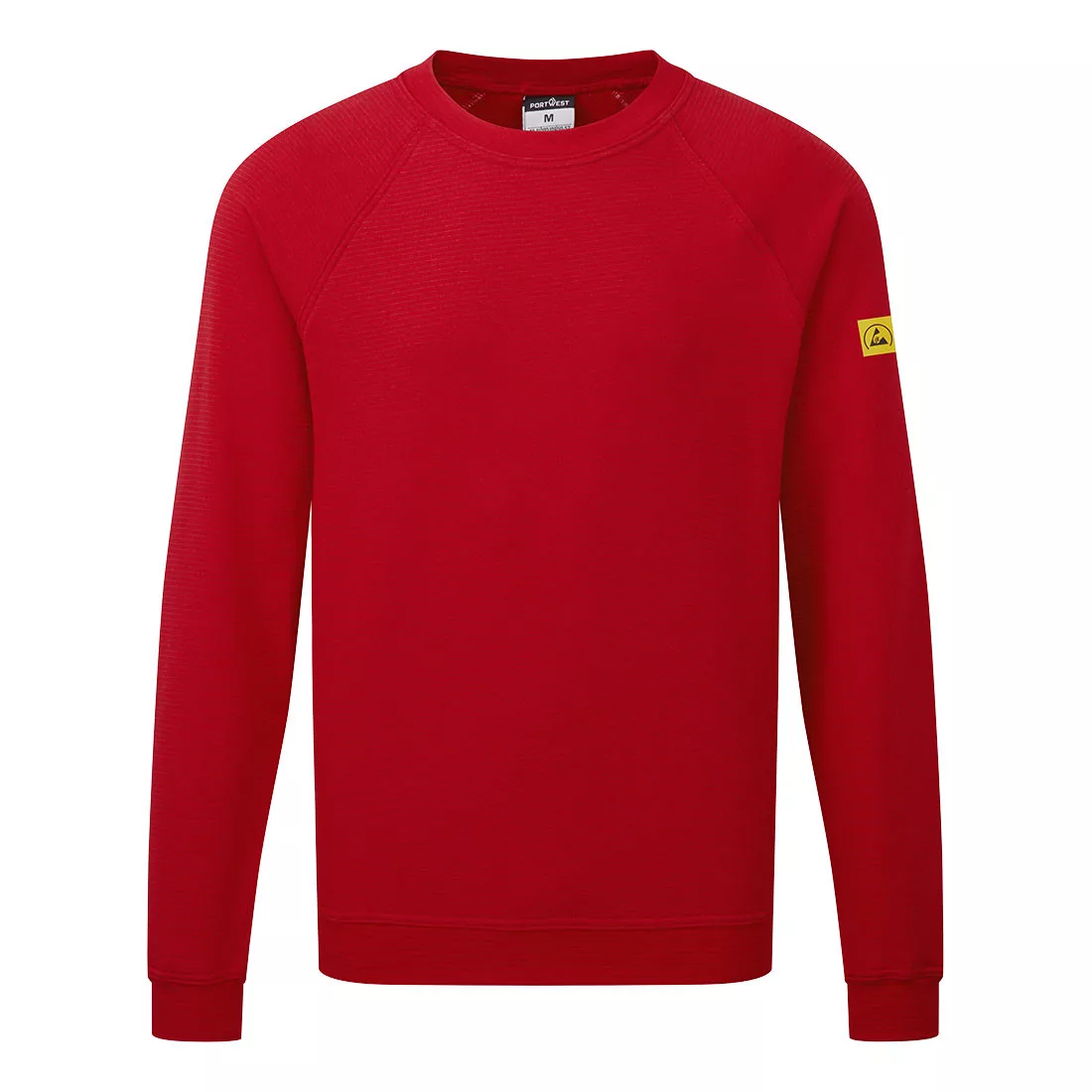 This Anti-Static ESD sweatshirt is breathable, warm and comfortable. It is ideal for EPA areas and environments where electrostatic resistance is required. The raglan sleeve allows greater freedom of movement, whilst carbon fibre woven throughout the fabric and rib provides fantastic antistatic protection. Available in a large variety of sizes and colours.