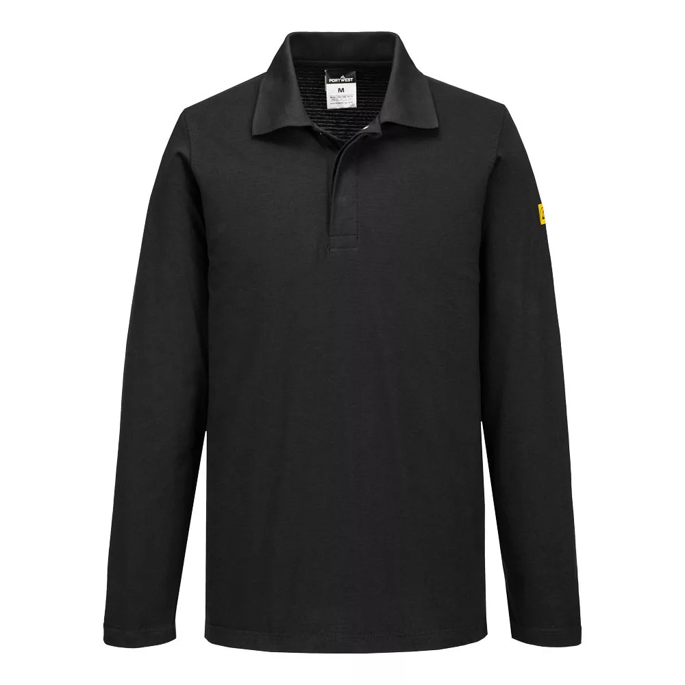 This anti-static long sleeved polo shirt is light and comfortable. The high cotton percentage makes it ideal for warm environments and EPA areas where electrostatic resistance is required. The concealed press-stud placket adds a smart, corporate finish. Carbon fibre woven through the fabric provides superb anti-static protection. Available in a large variety of sizes and colours.