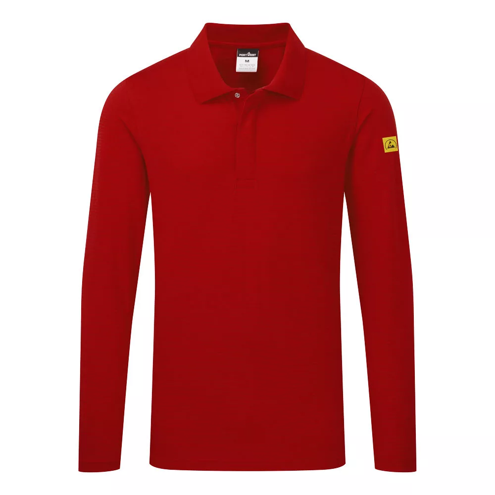 This anti-static long sleeved polo shirt is light and comfortable. The high cotton percentage makes it ideal for warm environments and EPA areas where electrostatic resistance is required. The concealed press-stud placket adds a smart, corporate finish. Carbon fibre woven through the fabric provides superb anti-static protection. Available in a large variety of sizes and colours.
