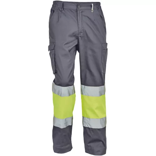 • férfi munkanadrág 7 cm széles fényvisszavető csíkokkal és Hi-Vis elemekkel • 2 első zseb + 1 érmezseb • 2 oldalzseb • 2 hátsó zseb • rugalmas oldalsó betétek a derékpánton • leengedhető szárak