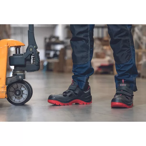 » biztonsági szandál kompozit lábujjvédővel és átszúrás ellen védő köztalppal, PU/TPU talppal » poliészter hálós béléssel » színbőr felsőrész » fémmentes kivitel