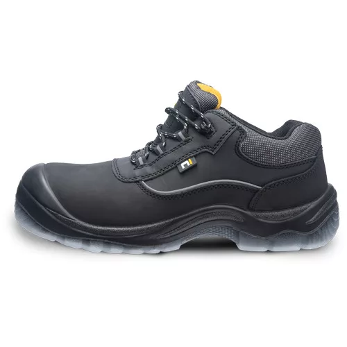 • biztonsági félcipő kompozit lábujjvédővel és átszúrás ellen védő köztalppal, PU/TPU talppal • nubukbőr felsőrész • fémmentes kivitel
