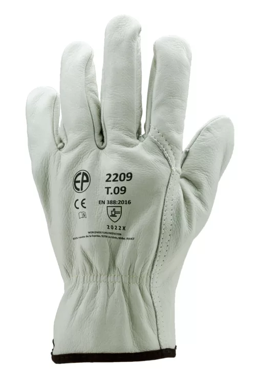 Sofőr kesztyű bézs színmarhabőrből, megerősített mutató- hüvelyk- és tenyérnél a középső ujjal, gumírozott mandzsettával