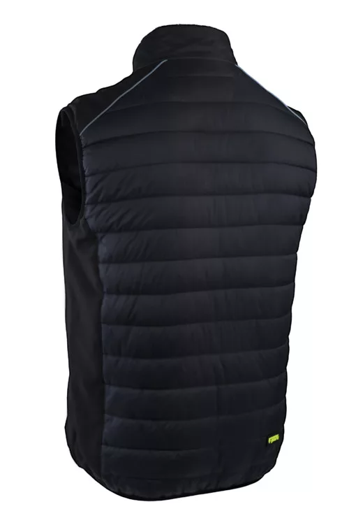 Külső: 100% nejlon mikro-ripstop + bélés: 100% poliészter Sorona technológiával -100 g/m2 + 3 rétegű softshell Polár álló gallérÁllig érő cipzár + állvédő 1 cipzáras softshell mellzseb, 2 függőleges oldalzseb + rejtett cipzárok a varrásban 1 tépőzáras belső zseb Gumírozott aljrész Softshell betétes váll-, mell-, oldalrészek és zsebek Hosszított hátrész Vállakon fényvisszaverő díszcsík