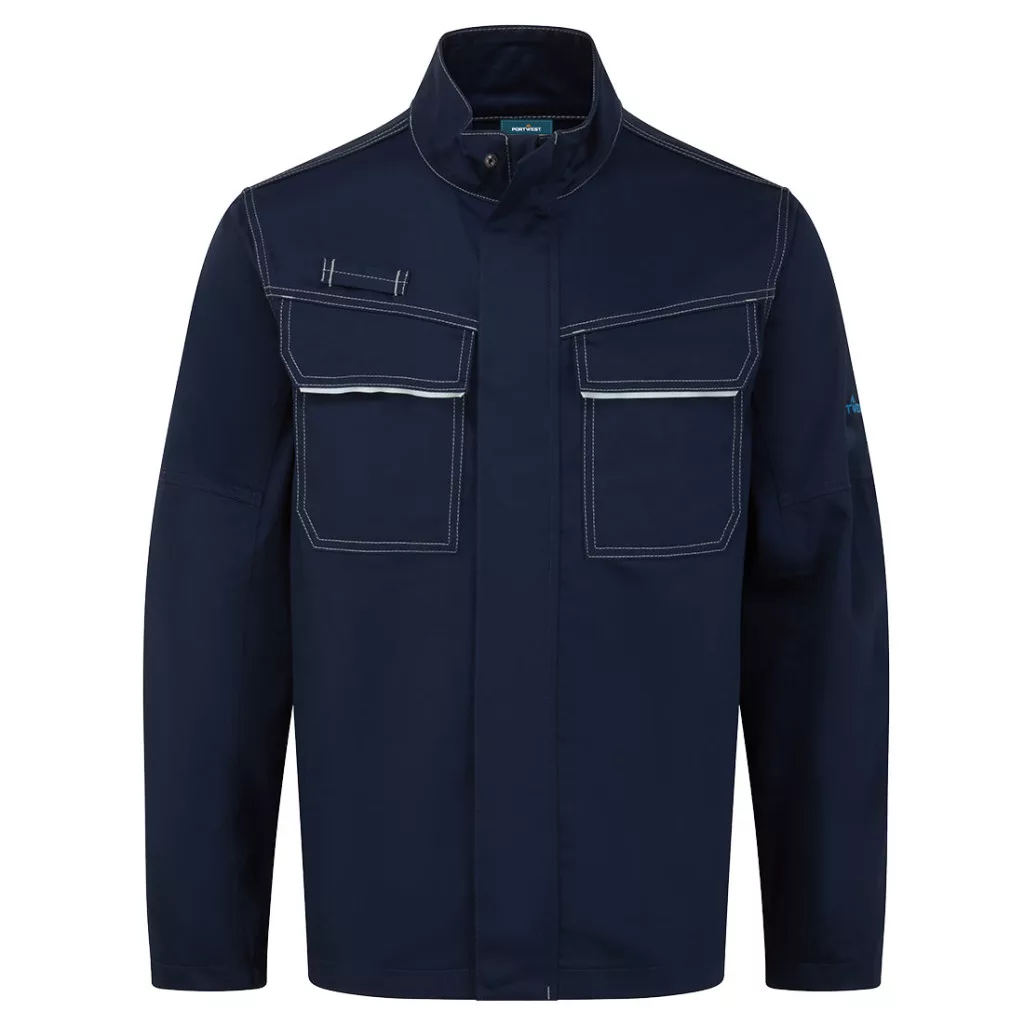 This Bizweld FR Jacket offers superb comfort, protection and functionality. Reinforced seams ensure a longer lifespan and higher wear resistance. The pocket flaps of the two chest pockets and the back yoke are lined with a reflective piping. Design features include concealed zipped front closure, two chest pockets with flaps and a half elasticated cuff for comfort and safety,