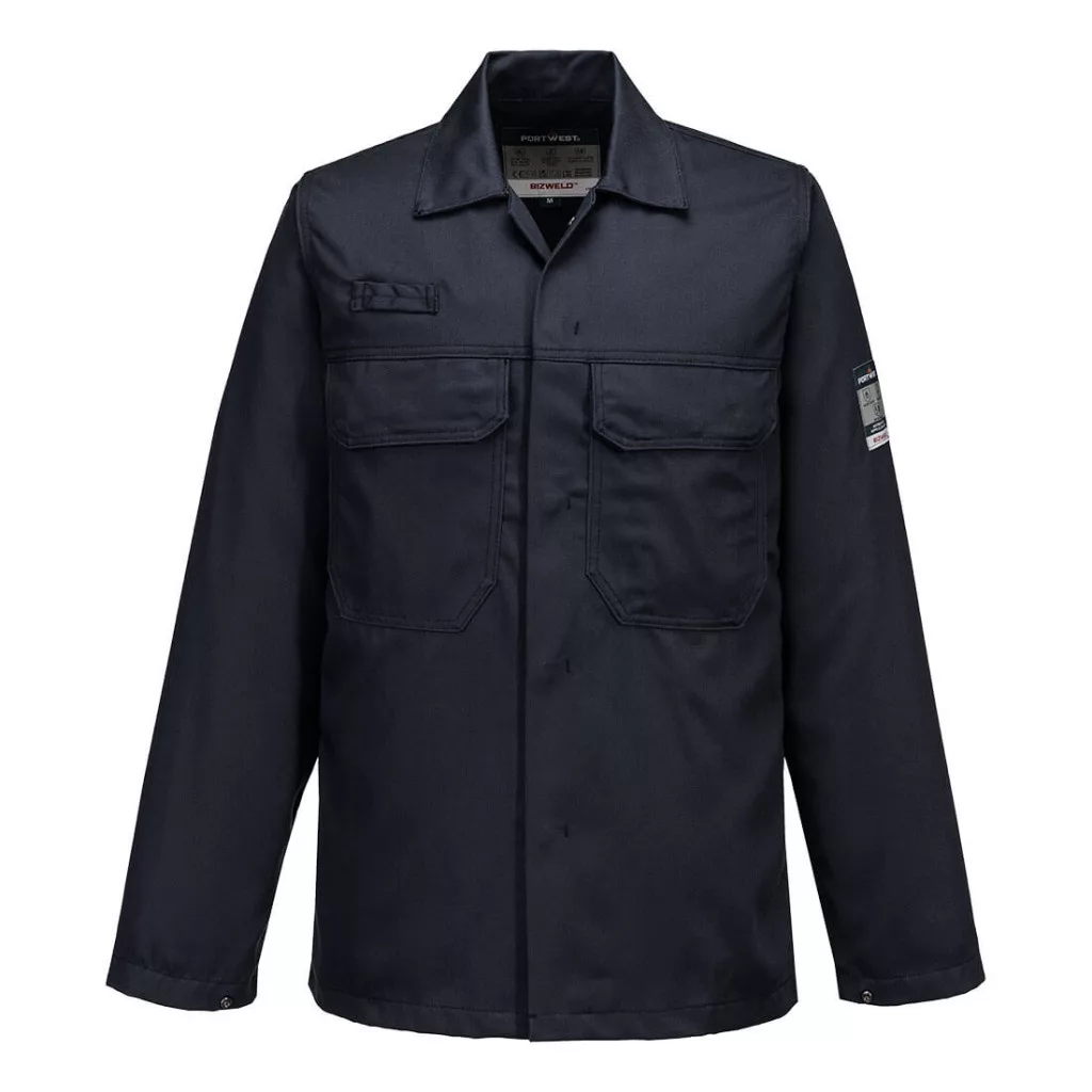 The Bizweld FR Jacket provides the wearer with all day protection and comfort. Features include secure stud fasteners down the front and two chest pockets with flaps. This flame resistant jacket also includes a concealed mobile phone pocket.