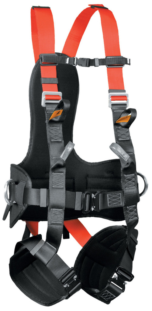 * 7 pontos teljes testhevederzet: 45 mm széles, állítható, poliészter váll-, derék-, comb- és fenékhevederek* munkahelyzet-beállító deréköv: komfortpárnázat, magas háttámasz * egy hátsó-, két oldalsó-, két mellső- és két beülős bekötési pont, illetve a gerincvonalon végig széles szivacsbetét segíti a hosszan tartó kényelmes munkahelyzetet* beülős munkavégzéshez párnázott, állítható körfogatú és hosszúságú, széles combhevederek