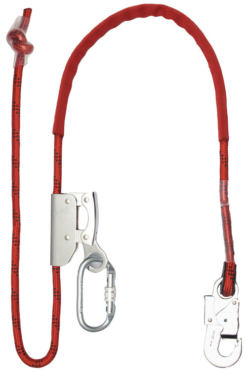 * 3 m hosszú, 12 mm átmérőjű, körszövött, statikus poliamid kötél* félautomata hossz-szabályzó egység* mechanikai sérülések elleni védőtömlő* egy csavarmenetes, egy rugós karabiner