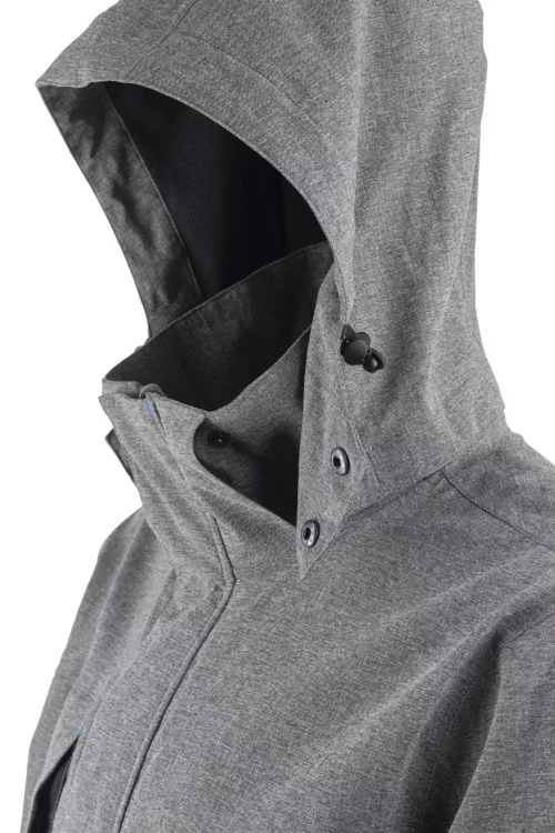 Kétrétegű Softshell: Halszálkás mintázatú 92% PES/ 8% elasztán + 180 g/m2 vastag PU membrán + 70 g/m2 vastag hálós bélés * Vízállóság: 5000 mm* Légáteresztő képesség: 2500 g/m2/24 h* Ragasztott varrások* Levehető viharkapucni* Álló gallér* Tépőzáras hajtókával fedett cipzár* Előformázott könyökrész* Gumírozott és tépőzáras mandzsetta* Húzózsinórral állítható derékrész* 4 zseb* Hosszított hátrész* FeliratozhatóEN 343 4.4