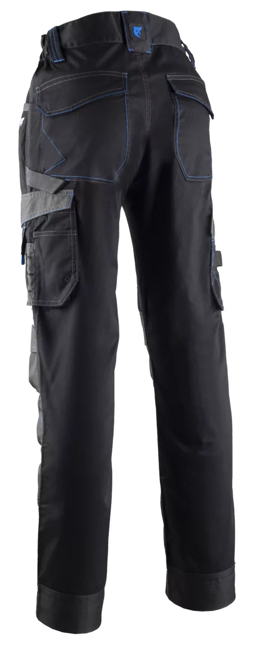 Twill (sávoly szövés): 65% GRS újrahasznosított poliészter/ 32% pamut / 3% elasztán - 250 g/m2 + poliamid / sztreccs betétek + Oxford 300D kiegészítők Megemelt derékrész 7 zseb 1 szerszámtartó hurok Sztreccs lépésbetét Térdvédő zsebek Kontrasztos színű felületek Tripla biztonsági varrás a száron +5 cm lehajtási lehetőség Regular fit EN 14404: 2-es típus