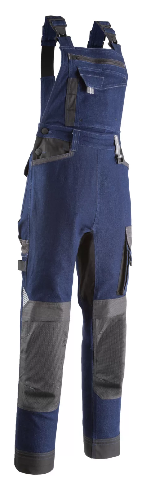 -Twill (sávoly szövés): poliészter / pamut / elasztán - 400 g/m2 + poliamid/sztreccs betétek + díszített Oxford 300D Magas hátrész 9 zseb 2 szerszámtartó hurokGumírozott vállpántok Elasztikus derék Sztreccs betét a lábköznél Térdvédő zsebek Kontraszt színű elemek Száron még 5 cm-es lehajtási lehetőségRegular fitEN 14404: 2. típus