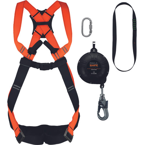 » Cerva készlet magasban végzett munkához » visszahúzható zuhanásgátló 7m, heveder, karabiner és rögzítő kötél függőleges és síkon történő mozgatáshoz » alkalmazás: » állványzat » fellépő platformok » tetőmunkák » acélszerkezetek» karbantartás » távvezeték oszlopok » EN 361, EN 362, EN 360, EN 79