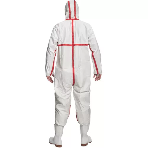 • csuklyás antisztatikus védőoverall mikroporózus páraáteresztő réteggel, leragasztott varratokkal, öntapadó hajtókával fedett cipzárral, valamint gumival összehúzható ujjal és nadrágszárral • az öltözék a CE III. osztályba, a 4. ,5. , és 6. típusba tartozik, és számos vegyszernek, valamint radioaktív szemcsék és fertőző anyagok behatolásának is ellenáll