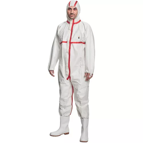 • csuklyás antisztatikus védőoverall mikroporózus páraáteresztő réteggel, leragasztott varratokkal, öntapadó hajtókával fedett cipzárral, valamint gumival összehúzható ujjal és nadrágszárral • az öltözék a CE III. osztályba, a 4. ,5. , és 6. típusba tartozik, és számos vegyszernek, valamint radioaktív szemcsék és fertőző anyagok behatolásának is ellenáll