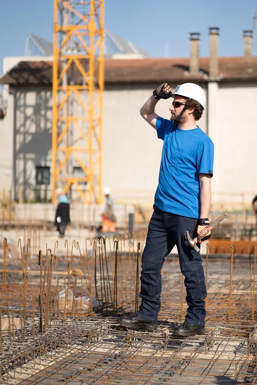 Twill (sávoly szövés): 98% pamut / 2% elasztán - 310 g/m2 * Megemelt derékrész* 6 zseb * 1 szerszámtartó hurok * Gumírozott derék * Térdvédő zseb * Tripla biztonsági varrás * Regular fit * EN 14404: Type 2