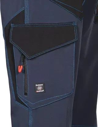 • 2 széles első zseb, 2 hátsó zseb, dupla szárzseb, tépőzárral és zippzárral