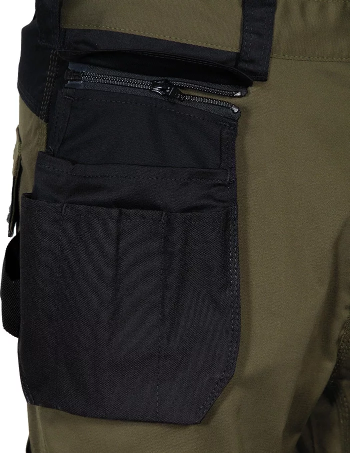 • Patenttal és zippzárral záródó bal szárzseb, jobb szerszámtartó szárzseb