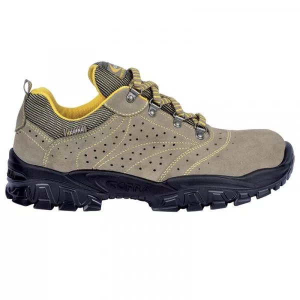BÉZS VELÚRBŐR FÉLCIPŐ/SÁRGA SZÖVET/ACÉL TALPLEMEZ