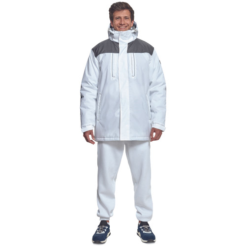 • férfi kapucnis télikabát • polár bélésű gallér • hosszított hátrész • 2 cipzáras mellkasi zseb • 2 cipzáras oldalzseb • 1 tépőzáras belső zseb • a kabát alja húzózsinórral állítható • tépőzárral állítható mandzsetta • levehető kapucni