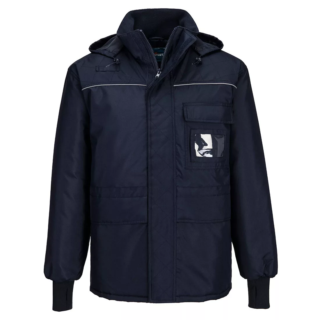 The CS10 3/4 length freezer jacket offers unrivalled protection. The heavy-duty two-way zipper allows maximum wearer flexibility and the extra long knitted cuffs with thumb holes provide extra warmth. The jacket includes reflective tape around the chest and back for extra visibility. Features also include a chest pocket with a clear ID pocket for security and personalisation.