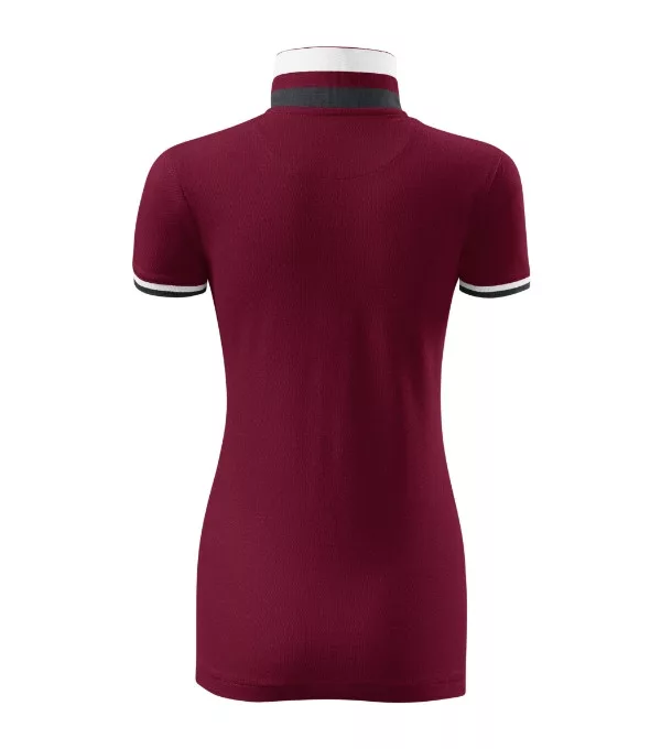 a felhajtható gallér alsó felülete és az ujjak szegélye kontraszt színű csíkokkal