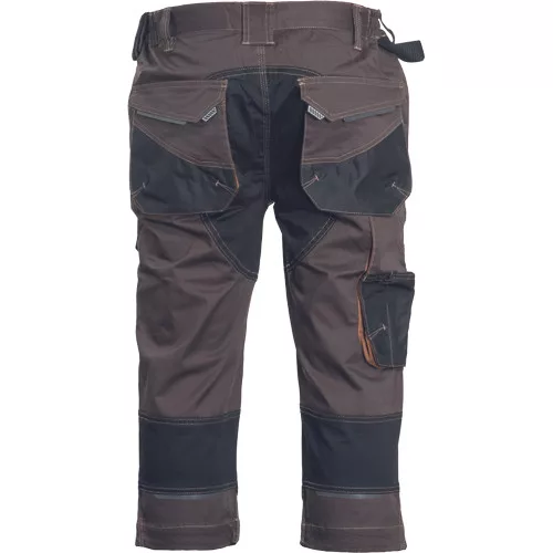Dinamikus vonalvezetésű, modern szabású férfi 3/4-es nadrág, rugalmas, innovatív TRIFIBETEX® anyagból. Alacsony, gumírozott derékkal készül, láb- és üleprészen tartós, tripla varrásokkal. Praktikus kialakítás: tágas, multifunkcionális első zsebek szerszámtartó pánttal, 2 hátsó zseb Oxford erősítéssel, a combon telefontartó zseb tépőzáras zsebfedővel, külön zsebek vonalzónak, késnek, kalapácsnak, egyedi repülőzseb, D-gyűrű, és szerszámtartó hurok a derékpánton. A munkaruha színeivel harmonizáló fényvisszavető elemekkel egészítettük ki.