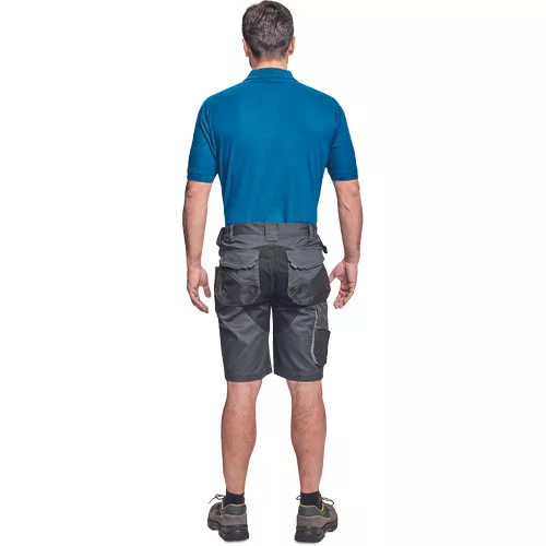 • férfi munka rövidnadrág rugalmas Trifibetex® anyagból • ergonomikus szabás • alacsony, gumírozott derék • tartós tripla varrás a szárakon és az üleprészen • tágas multifunkcionális első zsebek szerszámtartó pánttal • 2 hátsó zseb Oxford erősítéssel • a száron telefontartó zseb tépőzáras zsebfedővel • külön zsebek vonalzónak, késnek, kalapácsnak • egyedi kivitelű repülőzseb • D-gyűrű • szerszámtartó hurok a derékpánton • fényvisszavető részletek