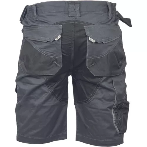 • férfi munka rövidnadrág rugalmas Trifibetex® anyagból • ergonomikus szabás • alacsony, gumírozott derék • tartós tripla varrás a szárakon és az üleprészen • tágas multifunkcionális első zsebek szerszámtartó pánttal • 2 hátsó zseb Oxford erősítéssel • a száron telefontartó zseb tépőzáras zsebfedővel • külön zsebek vonalzónak, késnek, kalapácsnak • egyedi kivitelű repülőzseb • D-gyűrű • szerszámtartó hurok a derékpánton • fényvisszavető részletek