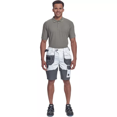 • férfi munka rövidnadrág rugalmas Trifibetex® anyagból • ergonomikus szabás • alacsony, gumírozott derék • tartós tripla varrás a szárakon és az üleprészen • tágas multifunkcionális első zsebek szerszámtartó pánttal • 2 hátsó zseb Oxford erősítéssel • a száron telefontartó zseb tépőzáras zsebfedővel • külön zsebek vonalzónak, késnek, kalapácsnak • egyedi kivitelű repülőzseb • D-gyűrű • szerszámtartó hurok a derékpánton • fényvisszavető részletek