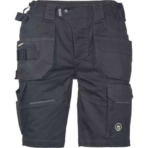 • férfi munka rövidnadrág rugalmas Trifibetex® anyagból • ergonomikus szabás • alacsony, gumírozott derék • tartós tripla varrás a szárakon és az üleprészen • tágas multifunkcionális első zsebek szerszámtartó pánttal • 2 hátsó zseb Oxford erősítéssel • a száron telefontartó zseb tépőzáras zsebfedővel • külön zsebek vonalzónak, késnek, kalapácsnak • egyedi kivitelű repülőzseb • D-gyűrű • szerszámtartó hurok a derékpánton • fényvisszavető részletek