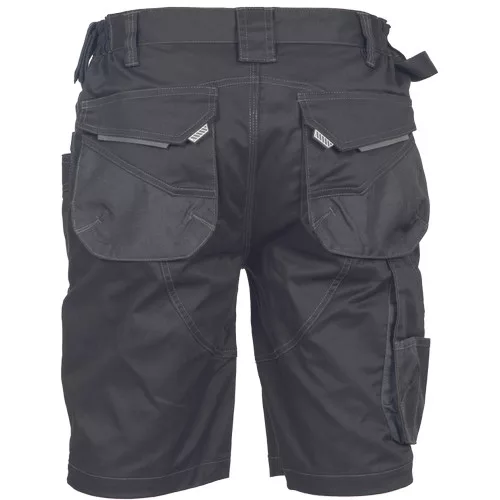 • férfi munka rövidnadrág rugalmas Trifibetex® anyagból • ergonomikus szabás • alacsony, gumírozott derék • tartós tripla varrás a szárakon és az üleprészen • tágas multifunkcionális első zsebek szerszámtartó pánttal • 2 hátsó zseb Oxford erősítéssel • a száron telefontartó zseb tépőzáras zsebfedővel • külön zsebek vonalzónak, késnek, kalapácsnak • egyedi kivitelű repülőzseb • D-gyűrű • szerszámtartó hurok a derékpánton • fényvisszavető részletek