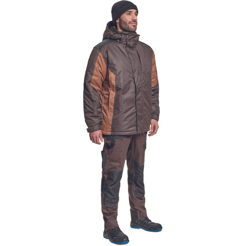 Dinamikus vonalvezetésű, modern szabású férfi télikabát, levehető, polár kapucnival és meleg gallérral. A kabát hátul hosszított, ennek és az ujjakon, valamint a derékrészen elhelyezett rugalmas passzénak köszönhetően kiválóan illeszkedik és melegen tart. A kapucni húzózsinórral állítható. Két cipzáras belső- és oldalzsebbel, valamint egy mellzsebbel, a cipzárakon tépőzáras borítással készül. Színben harmonizáló fényvisszavető elemekkel egészítettük ki. A kabát hátrésze hímezhető. Anyaga: 100% poliészter/PU, 120g/m2. Bélés: 100% poliészter, 160 g/m2. Vízoszlop 3000 mm. Páraáteresztő képesség: 3000 g/ m2 / 24 óra