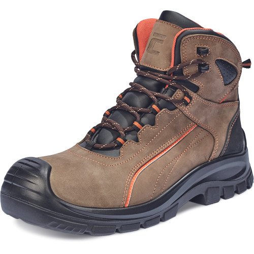 • biztonsági bakancs kompozit lábujjvédővel és fémmentes átszúrás ellen védő köztalppal, kétrétegű PU/PU talppa l• vízlepergető nubuk bőr felsőrész