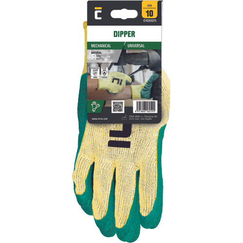 • kötött, varratmentes pamut-poliészter kesztyű • félig természetes latexbe mártva • csúszásgátló tenyér és ujjak • rugalmas, kötött mandzsettáa méretek: női 7, 8 (zöld) | férfi 9, 10, 11 (szürke)