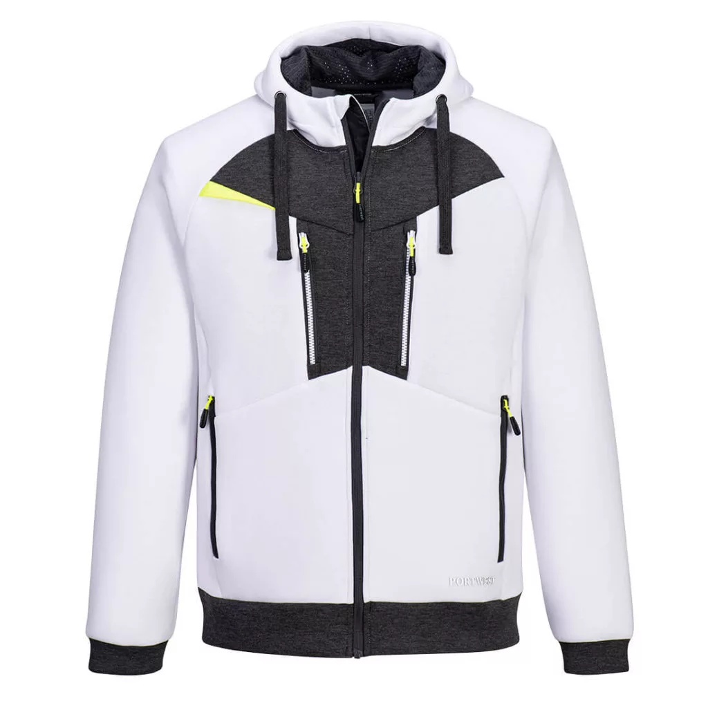 The DX4 Zipped Hoodie is innovative and technical with a two-faced fabric that provides lightweight warmth and unrestricted movement. Two zipped chest and side entry pockets offer plenty of secure storage space. The full zip on the front has a rubber puller for easy grip and the adjustable hood provides a close fit. A contemporary option for the modern worker.