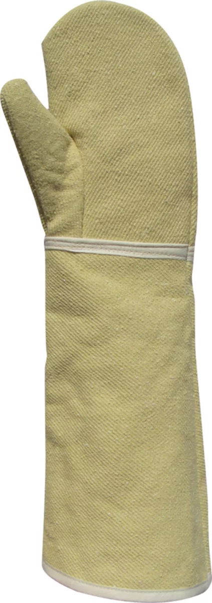 * 85% para-aramid szál, 15% meta-aramid, TNT modakrillal párosítva, 750 g/m2 vastag, belül a tenyerén és a hüvelykujjon megerősítve.* 350°C kontakt hőhatásnál 15 sec időtartamig nyújt védelmet * nagy szakítószilárdságú anyag, mely véd olvadt fémcseppek ellen is * 38 cm hosszú - egy ujjas változat