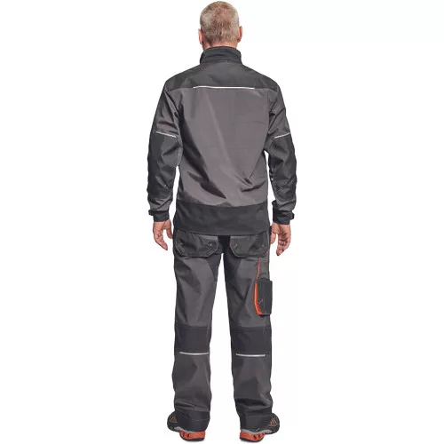 • férfi dzseki multifunkciós zsebekkel • D-gyűrű • Oxford erősítés a könyökrészen • biztonságos telefonzseb • fényvisszavető elem • kontrasztos színű erősítések • fedett cipzár