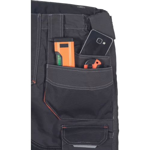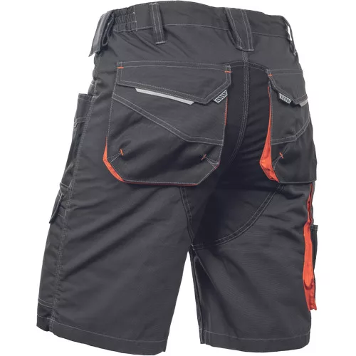 • férfi rövidnadrág tágas zsebekkel • 2 szerszámtartó hurok • Oxford 600D erősítés az igénybevett részeken • tartós hármas varrás • rugalmas derék, fényvisszavető elemek • az erősítéseken kontrasztos színű varratokkal