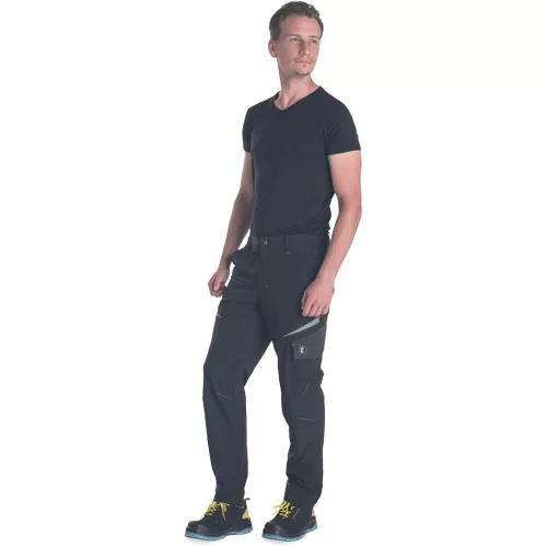 • men's working pants with an elastic waistband • lightweight stretch material for a comfortable fit • 2 side pockets • 2 thigh pockets • 2 back pockets • reflective details • adjustable leg length