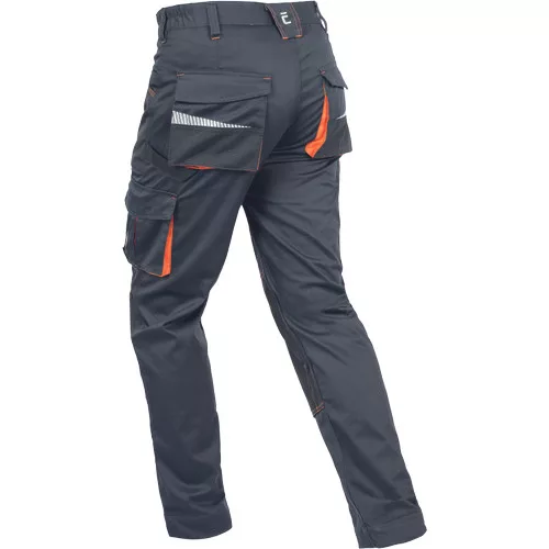 • férfi munkanadrág, rendkívül tartós rugalmas anyagból • elasztikus derékkal • multifunkcionális zsebek • Oxford 600D megerősített térdzsebek térdvédők behelyezéséhez • nyomtatott szegmensekre bontott fényvisszavető részletek • állítható szárhossz