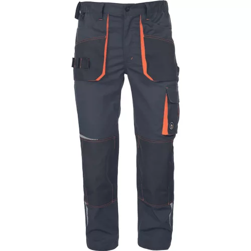 • férfi munkanadrág, rendkívül tartós rugalmas anyagból • elasztikus derékkal • multifunkcionális zsebek • Oxford 600D megerősített térdzsebek térdvédők behelyezéséhez • nyomtatott szegmensekre bontott fényvisszavető részletek • állítható szárhossz