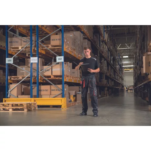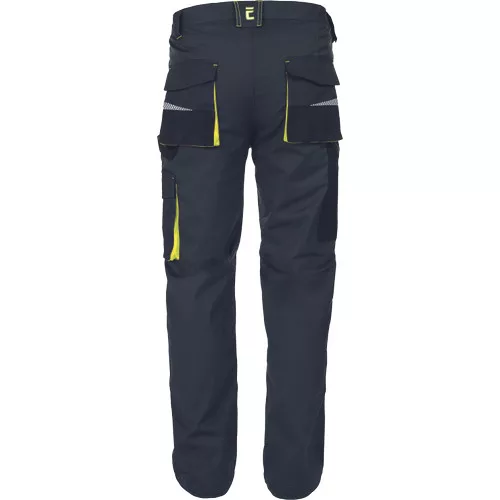 • férfi munkanadrág, rendkívül tartós rugalmas anyagból • elasztikus derékkal • multifunkcionális zsebek • Oxford 600D megerősített térdzsebek térdvédők behelyezéséhez • nyomtatott szegmensekre bontott fényvisszavető részletek • állítható szárhossz