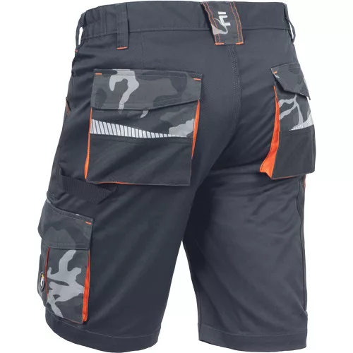 • munka rövidnadrág, rendkívül tartós rugalmas anyagból, elasztikus derékkal • multifunkcionális zsebek • Oxford 600D megerősítés a nagy igénybevételű területeken • szegmensekre bontott fényvisszavető részletek